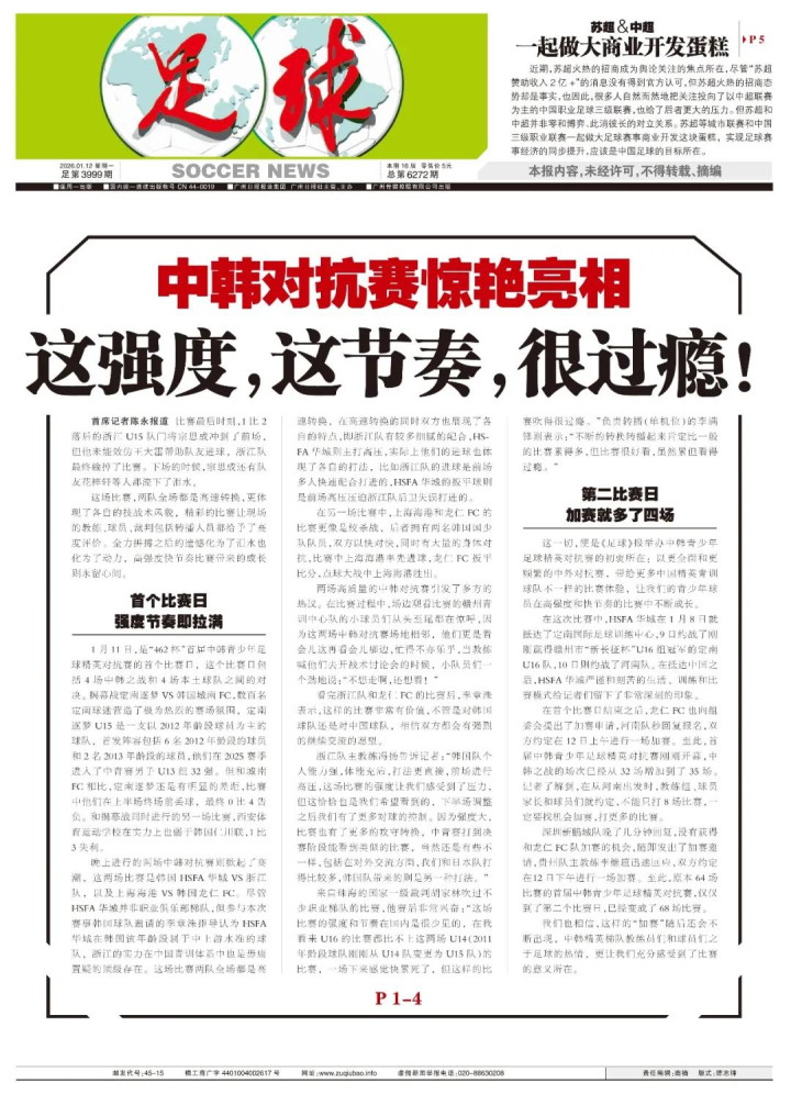 这一切,便是《足球》报举办中韩青少年足球精英对抗赛的初衷所在:以更全面和更频繁的中外对抗赛,带给更多中国精英青训球队不一样的比赛体验,让我们的青少年球员在高强度和快节奏的比赛中不断成长。