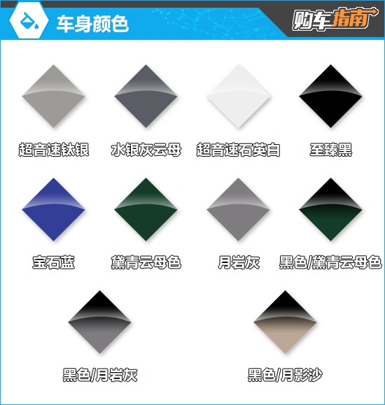 车身颜色方面,新车共提供10款颜色。其中,4款车型均可选择的颜色为超音速钛银、超音速石英白、至臻黑、黛青云母色和月岩灰(需要额外加价5200元);仅先峰和凌峰ULTRA可选的颜色为水银灰云母和宝石蓝;黑色/黛青云母色(需要额外加价2000元)、黑色/月岩灰(需要额外加价7200元)和黑色/月影沙(需要额外加价7200元)为两款OVERTRAIL车型专属。从实际效果来看,月岩灰和至臻黑颜值出众且与车辆定位更搭,消费者可以优先考虑。