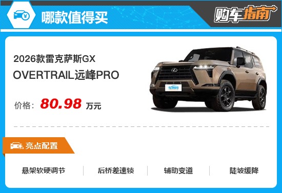 综合来看期配宝,如果您正在关注2026款雷克萨斯GX,那么OVERTRAIL远峰PRO在购买时可优先考虑。